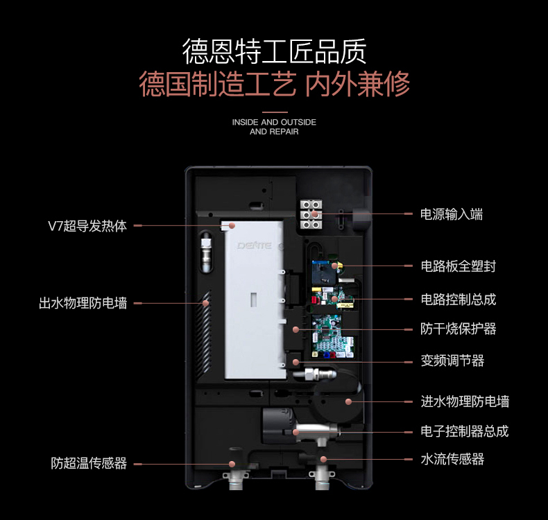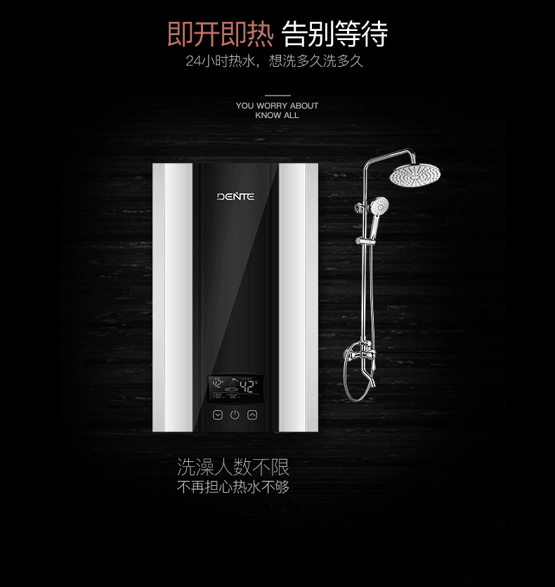 德恩特DTR-V7HD85即開(kāi)即熱3秒速熱 變頻恒溫洗澡淋浴